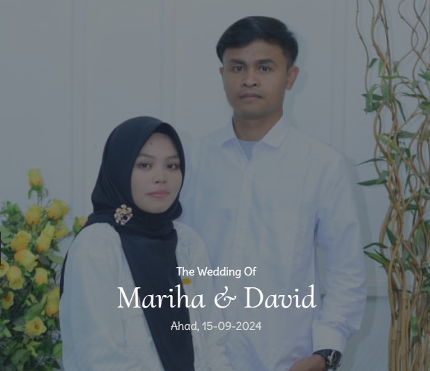 The Wedding Of Mariha & David Ahad, 15-09-2024 Kepada Yth Bapak/Ibu/Saudara/i Tamu Undangan Buka Undangan Undangan Pernikahan Mariha & David Ahad, 22-09-2024 The Wedding Of Mariha & David 0 September 0 Simpan di Kalender “Dan di antara tanda-tanda (kebesaran)-Nya ialah Dia menciptakan pasangan-pasangan untukmu dari jenismu sendiri, agar kamu cenderung dan merasa tenteram kepadanya, dan […]