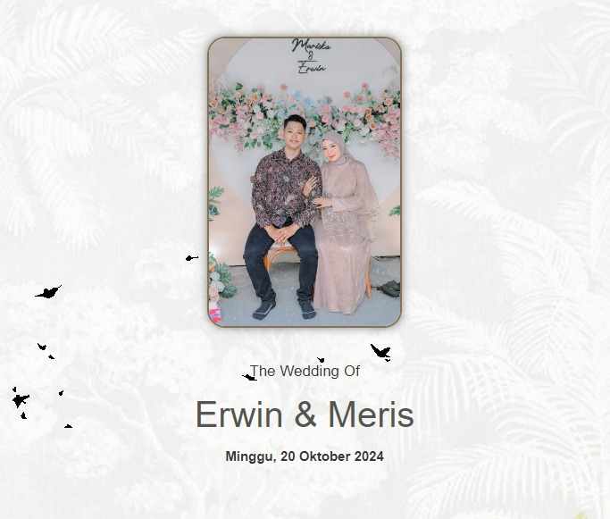 Dear : Tamu Undangan Please be a part of our happiest moment The Wedding of E M Open Invitation The Wedding of Erwin & Meris Minggu, 20 Oktober 2024 E M “ Dan di antara tanda-tanda (kebesaran) -Nya adalah Dia menciptakan pasangan-pasangan untukmu dari jenismu sendiri, agar kamu cenderung dan merasa tenteram kepadanya “ ( […]
