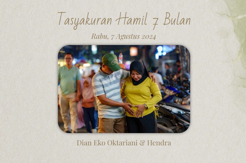 Tasyakuran Hamil 7 Bulan Rabu, 7 Agustus 2024 Dian Eko Oktariani & Hendra Kepada Yth. Bapak / Ibu /Saudara/i Nama Tamu *Mohon maaf apabila ada kesalahan dalam penulisan nama / gelar Buka Undangan Tasyakuran Hamil 7 Bulan Assalamu’alaikum, Wr. Wb. Dengan memohon Ridho dan Rahmat dari Allah SWT, kami bermaksud ingin menyelenggarakan Tasyakuran 7 bulan […]